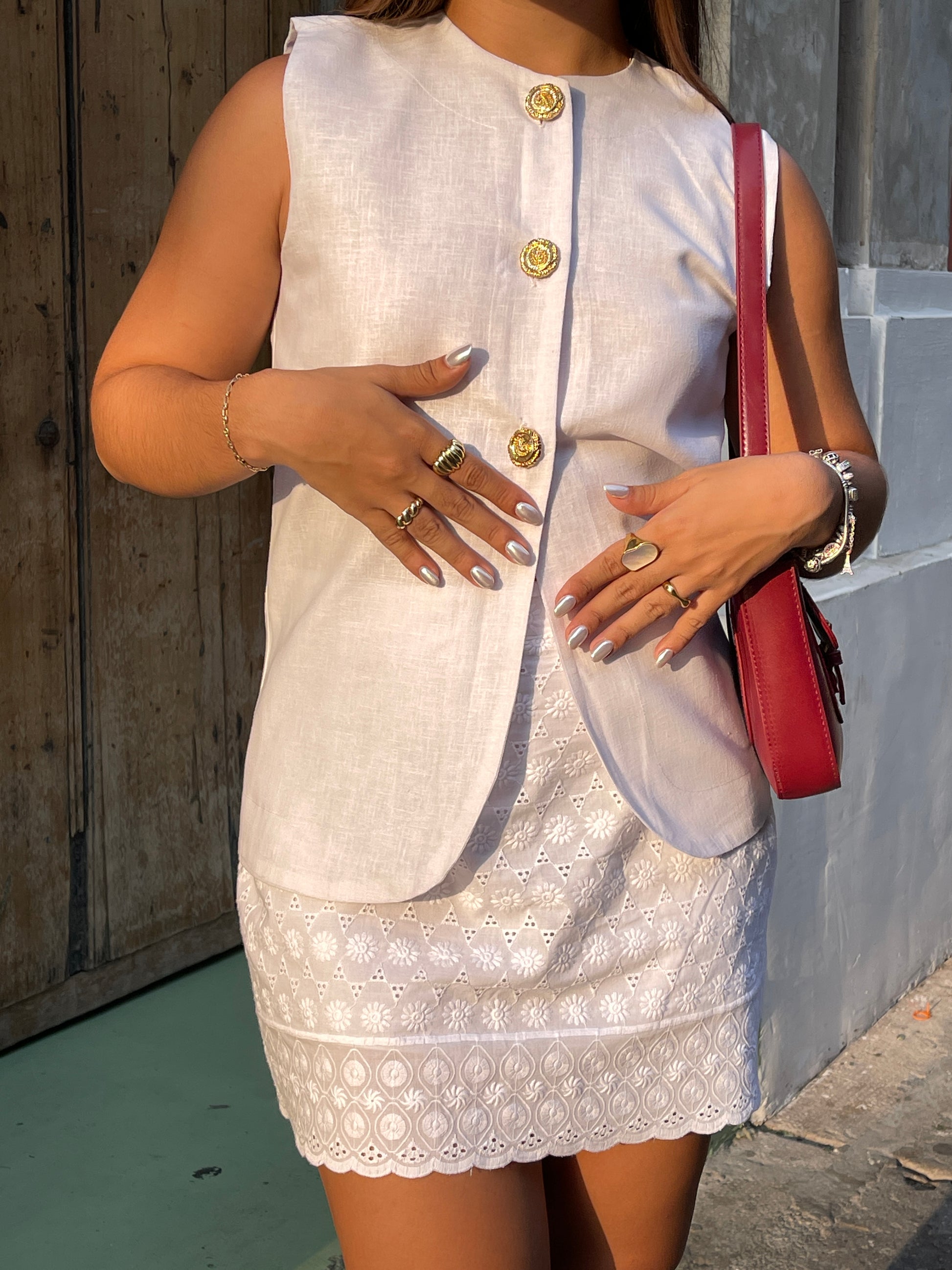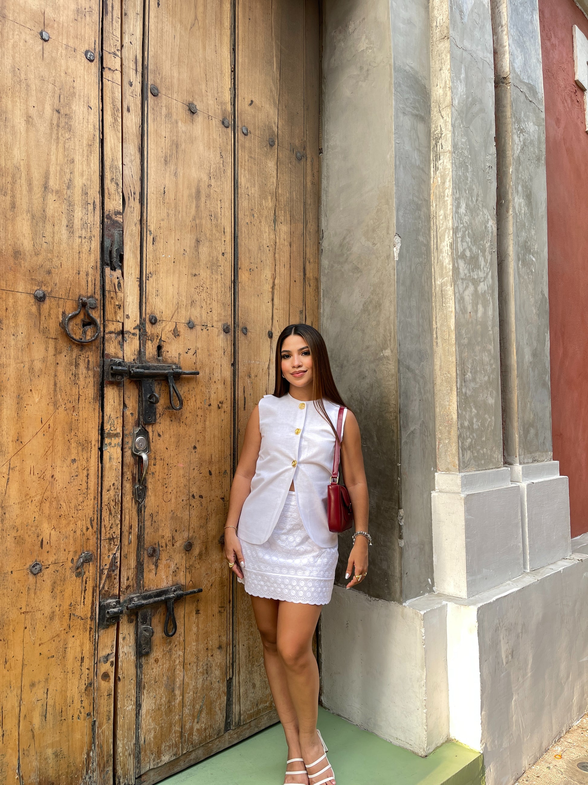 Disfruta de la elegancia y frescura que ofrece nuestro Set Rubiela para mujeres sofisticadas. Este set incluye una hermosa prenda blanca que te hará lucir radiante y sofisticada. Resalta en cualquier ocasión con este atuendo fresco y moderno. ¡Haz que tu estilo resplandezca con el Set Rubiela!